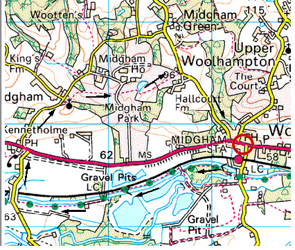 Midgham Park. In about 1000yds, this comes out onto a metalled road. Turn R here and walk down the road