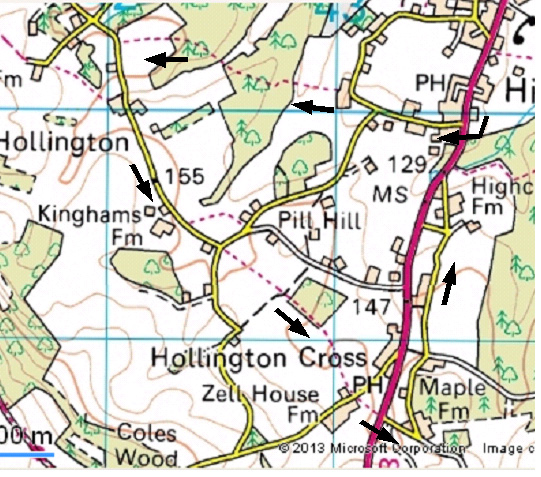 From the Red House, walk away from Newbury and turn R in 150 yds down the lane. Ignore a LH turning, and where the lane bends R by a large modern house, take the FP over a stile to the L. Follow this for about 1000 yds, first going downhill then up through woods, bearing L through more woods, then across a field to a stile out onto a lane. Turn L and follow the lane for another 1000 yds to a T junction, where go over the stile in front of you. Follow indistinct paths up this field, and aim for a rather obtuse corner in the far hedge, where there is another stile. Cross this, and then a very muddy lane and go forward into a large field. Follow the headland, with the hedge on your L down towards the houses on the road. The field boundary turns R, and where it turns L again there is a broken stile leading into a footpath with the hedge on the L and a wire fence on the R. This comes out onto a lane, where take the stile opposite and follow the path through the small field to another stile leading onto the main road (A343). Cross this and go up the lane opposite, turning sharp L at the top. Follow this lane for 1000 yds passing several cottages to the main road, where turn R for 300 yds to the pub.