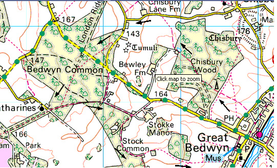 500 yds, crossing the Bedwyn-Marlborough road half way. In the middle of Bedwyn Common, go half L to follow